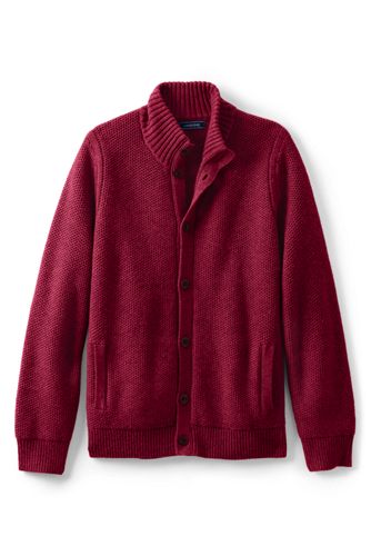 <ランズエンド>メンズ・コットンメリノ・リッチハニカム・カーディガン/M/レッド