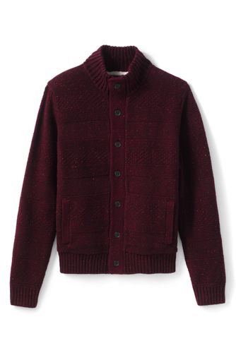 54%OFF<ランズエンド>メンズ・ツイーディニット・シェルパラインド・カーディガン/L/レッド