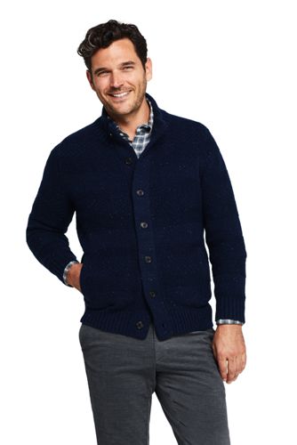54%OFF<ランズエンド>メンズ・ツイーディニット・シェルパラインド・カーディガン/M/ブルー