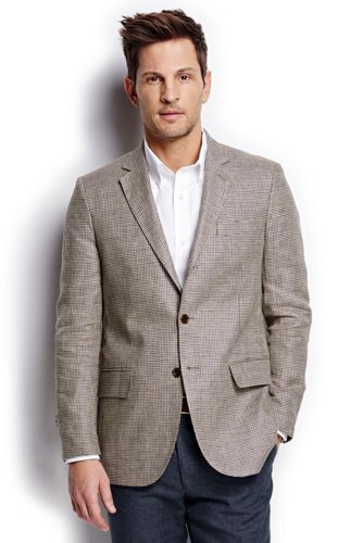 28%OFF<ランズエンド>メンズ・ベアードマクナット・アイリッシュリネン・アンコンテーラード・ジャケット/ハウンズトゥース/Y6/ブラウン