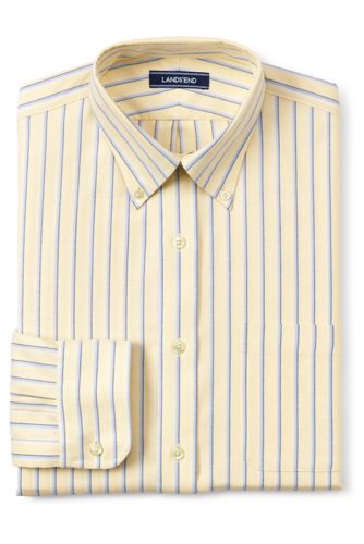 24%OFF<ランズエンド>メンズ・ノーアイロン・スーピマ・オックスフォード/柄/ボタンダウン/ベーシックフィット/長袖/L/イエロー