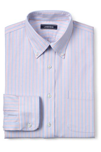 24%OFF<ランズエンド>メンズ・ノーアイロン・スーピマ・オックスフォード/柄/ボタンダウン/ベーシックフィット/長袖/L/ベージュ