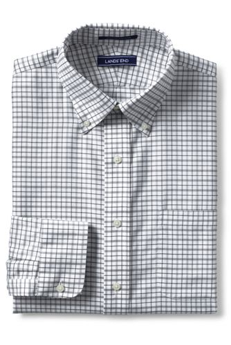 24%OFF<ランズエンド>メンズ・ノーアイロン・スーピマ・オックスフォード/柄/ボタンダウン/ベーシックフィット/長袖/L/グレー