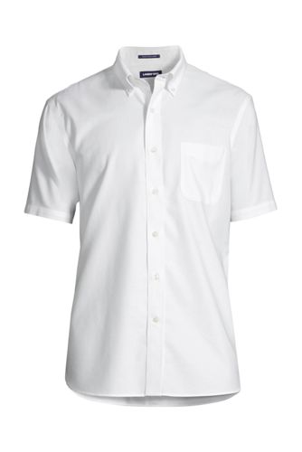 <ランズエンド>メンズ・ノーアイロン・スーピマ・オックスフォード/無地/ボタンダウン/ベーシックフィット/半袖/S/ホワイト