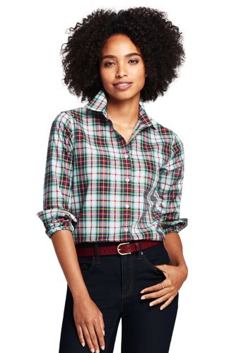 <ランズエンド>レディス・美型シルエット・スーピマ・ノーアイロン・身長別シャツ/レギュラー/柄/長袖/XXL/グリーン