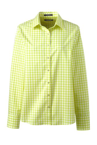 <ランズエンド>レディス・美型シルエット・スーピマ・ノーアイロン・身長別シャツ/レギュラー/柄/長袖/XL/グリーン