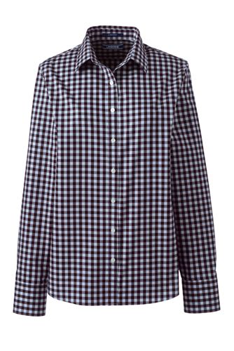 48%OFF<ランズエンド>レディス・美型シルエット・スーピマ・ノーアイロン・ポップオーバー/柄/長袖/M/レッド