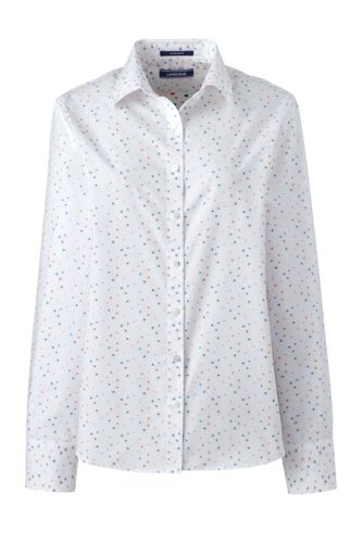 <ランズエンド>レディス・美型シルエット・スーピマ・ノーアイロン・身長別シャツ/レギュラー/柄/長袖/M/ホワイト