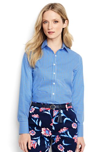 <ランズエンド>レディス・美型シルエット・スーピマ・ノーアイロン・身長別シャツ/レギュラー/柄/長袖/S/ブルー