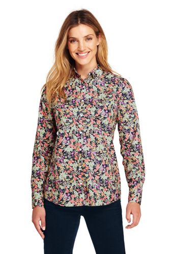 <ランズエンド>レディス・美型シルエット・スーピマ・ノーアイロン・身長別シャツ/レギュラー/柄/長袖/XXL/その他