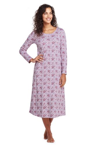 50%OFF<ランズエンド>レディス・スーピマ・インターロック・スリープT/ひざ下/柄/長袖/M/パープル