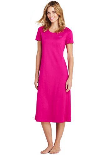 <ランズエンド>レディス・スーピマ・インターロック・スリープT/ひざ下/無地/半袖/M/ピンク