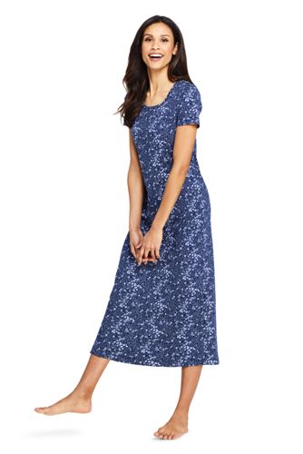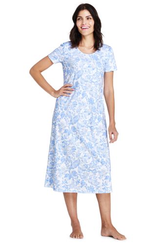 <ランズエンド>レディス・スーピマ・インターロック・スリープT/ひざ下/柄/半袖/M/ブルー