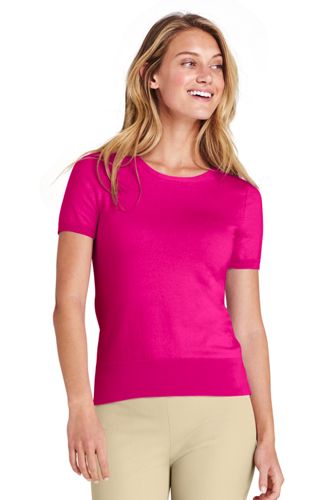 <ランズエンド>レディス・スーピマ・ファインゲージ・クルーネック・セーター/無地/半袖/XL/ピンク