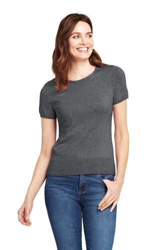 <ランズエンド>レディス・スーピマ・ファインゲージ・クルーネック・セーター/無地/半袖/S/グレー