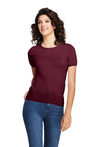 <ランズエンド>レディス・スーピマ・ファインゲージ・クルーネック・セーター/無地/半袖/S/レッド