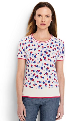 <ランズエンド>レディス・スーピマ・ファインゲージ・クルーネック・セーター/柄/半袖/S/ホワイト