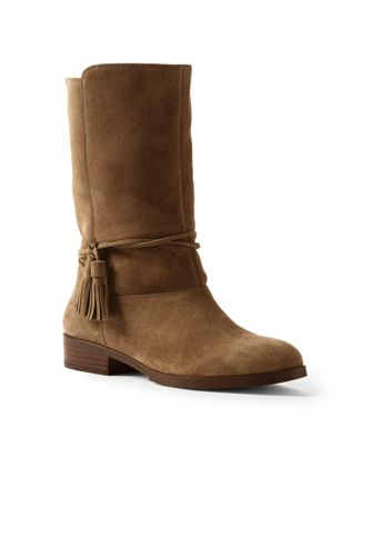 57%OFF<ランズエンド>レディス・スエード・タッセル・ブーティ/23/ベージュ