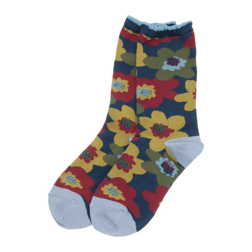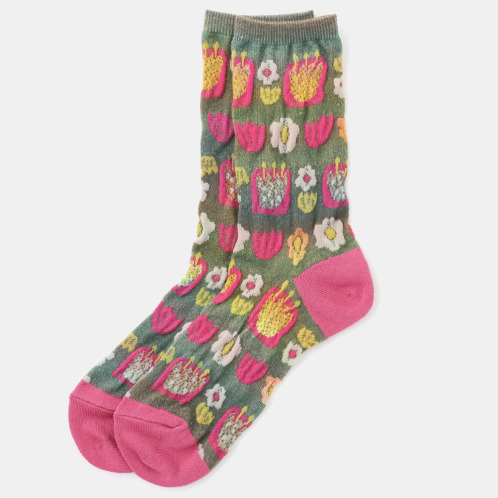 <ショップチャンネル> エム アンド キョウコ フラワータイル柄 ミドルゲージソックス