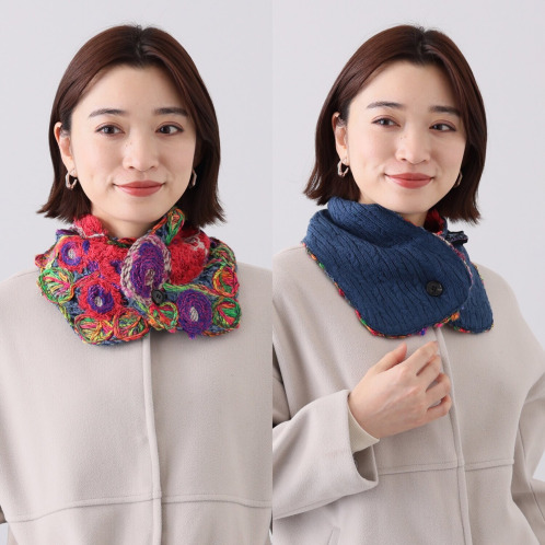 <ショップチャンネル> エム アンド キョウコ フラワー刺しゅう リバーシブル プチマフラー