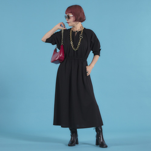 <ショップチャンネル> ボン・ブリコラージュ バイ レイコホウセンジ ディテールとシルエットで 細見え! NYのハンサムレディーが 颯爽と着るエレガントな カットソードレス