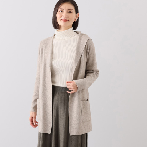 <ショップチャンネル> ルクオーレ フード付 ダブルフェイス ニットコーディガン
