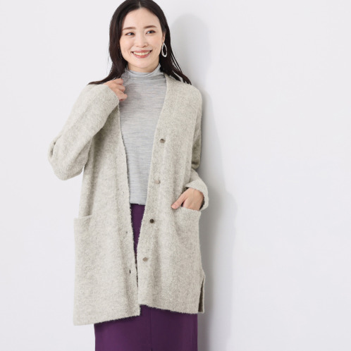 <ショップチャンネル> アズイズ ビーマイセルフ バイ ネイチャーズ ベビーアルパカ混ブークレ Vネックコーディガン