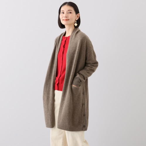 <ショップチャンネル> ネイチャーズ 無染色ヤク サイドボタンアクセント コーディガン