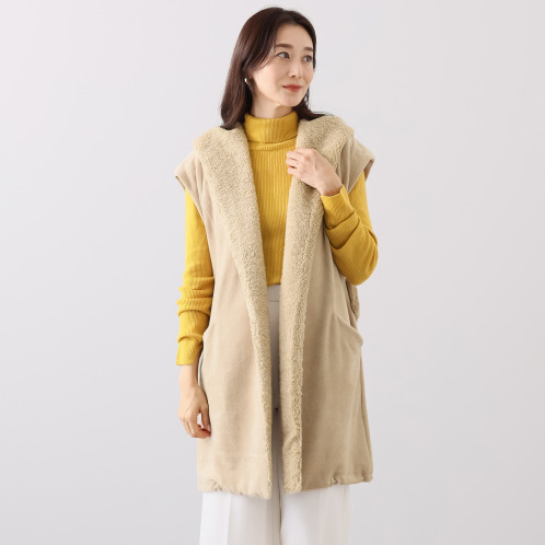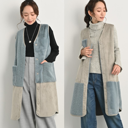 レディース ジレ●柔らかな肌触りのエコムートン風素材を身頃に使用