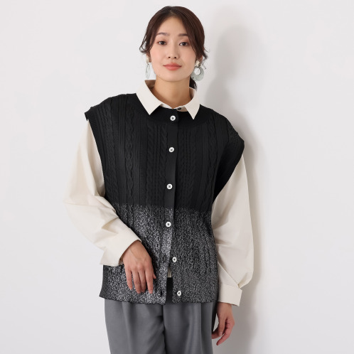 レディース ジレ●さまざまな種類の横編みニットを贅沢に使用した、
