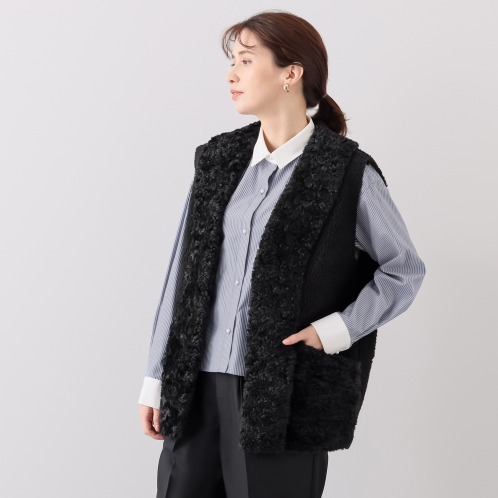 レディース ジレ●くるんとカールした毛足が愛くるしいフェイクファ