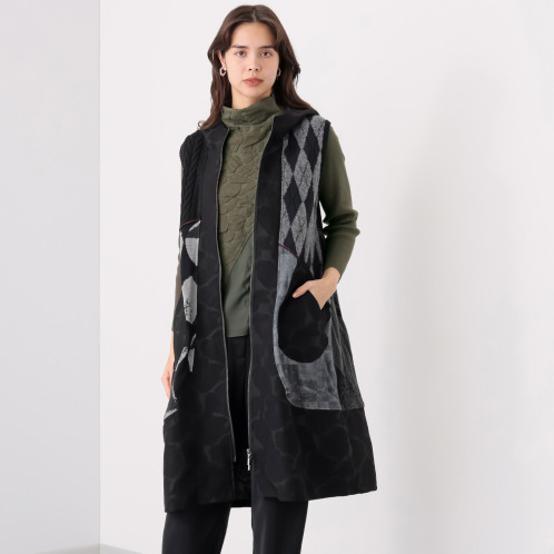 <ショップチャンネル> ヨシヨシ バイ ピージェイ 異素材使い パッチワーク切替 デザインロングジレ