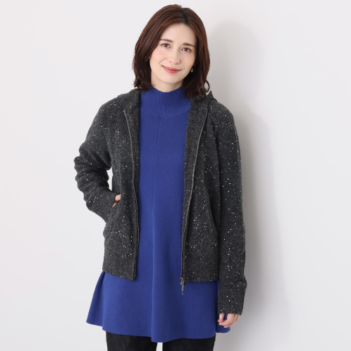 <ショップチャンネル> マダムヒロコ スノークリスタル マイクロスパンコール ニットパーカー