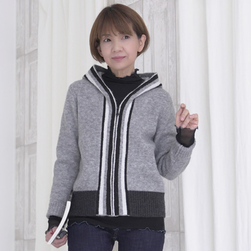 <ショップチャンネル> エムズ スタイル ジャガードニット ラインアクセント フーディーパーカー