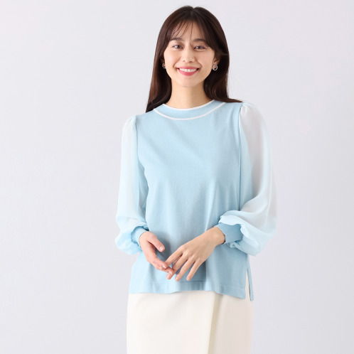 <ショップチャンネル> マイジュジュ 袖シフォンジョーゼット ニットプルオーバー
