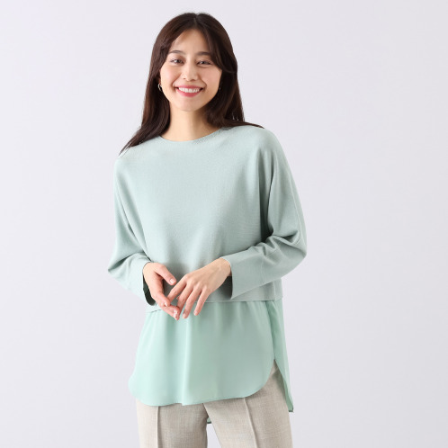 レディース プルオーバー●ニットとシフォンジョーゼットを組み合わ