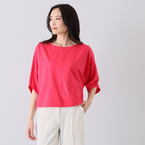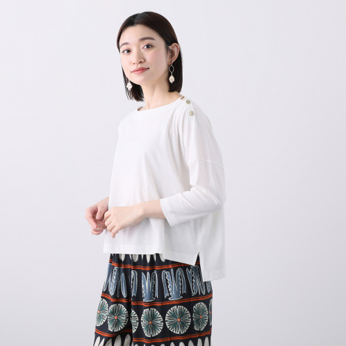 <ショップチャンネル> BOUNCY BOND コットン100% さらさら天竺 ボタンアクセント ボートネックプルオーバー