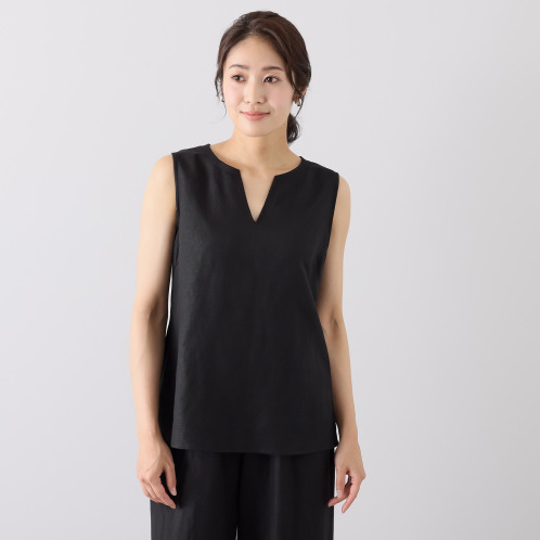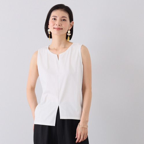 <ショップチャンネル> シャビージェンティール アシンメトリーヘム キーネック ノースリーブプルオーバー