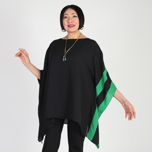 <ショップチャンネル> ギラ・ジルカ ジョーゼット ワイドスクエア バイカラーアクセント プルオーバー