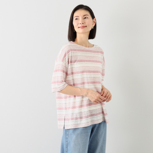 <ショップチャンネル> ツチエ リネン ランダムボーダー 天竺プルオーバー
