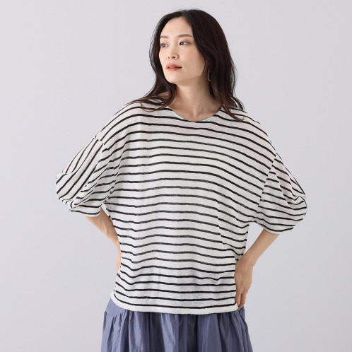 <ショップチャンネル> ツチエ リネン ボーダー天竺 ランプスリーブ プルオーバー