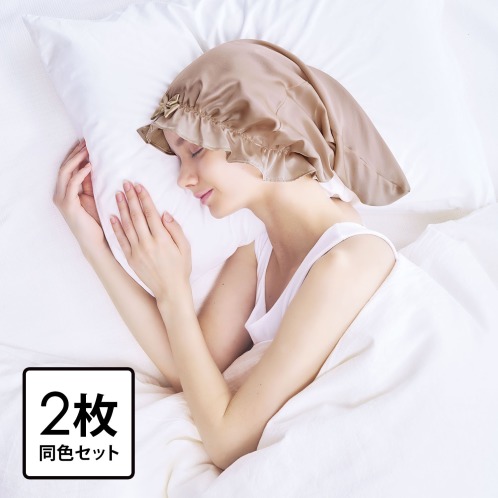 <ショップチャンネル> 睡眠中の美髪習慣! シルク100%で 髪をやさしく守る シルクシャイニー ナイトキャップ2枚組